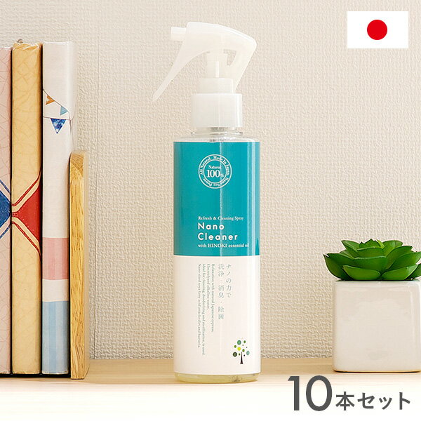 【割引クーポン配布中】【特許取得済/日本製/天然成分100%】消臭・除菌剤 Nano Cleaner(ナノクリーナー) 200ml×10本セット 消臭スプレー 消臭グッズ 除菌スプレー 除菌グッズ 大豆アレルギー成分除去済 大豆 檜 ヒノキ ひのき 天然ヒノキエッセンシャルオイル入り